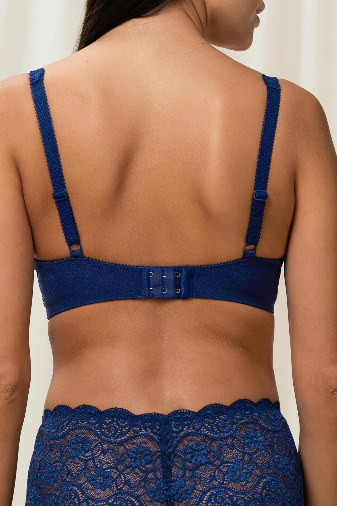 Triumph liemenėlė su minimaliu pakietinimu, elastingais nėriniais, su lankeliais. Siauros reguliuojamos petnešėlės per pusę ilgio. Priekis dekoruotas nėriniais.  Liemenėlė puikiai suformuoja gražią krūtinę. Plotis reguliuojamas trimis pozicijomis, viena kabliukų eilute.