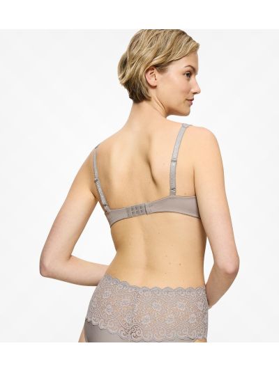 Triumph liemenėlė su minimaliu pakietinimu, elastingais nėriniais, su lankeliais. Siauros reguliuojamos petnešėlės per pusę ilgio. Priekis dekoruotas nėriniais.  Liemenėlė puikiai suformuoja gražią krūtinę. Plotis reguliuojamas trimis pozicijomis, viena kabliukų eilute.