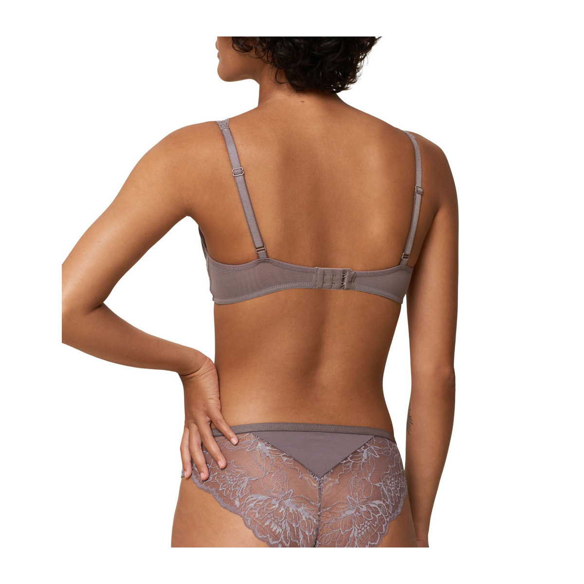 Liemenėlė moterims Triumph su pakietinimu ir lankeliais. Kaušeliai dekoruoti gėlių siuviniais. Petnešėlės reguliuojamos, nugaroje susegama trijose pozicijose, dviem kabliukų eilutėmis.