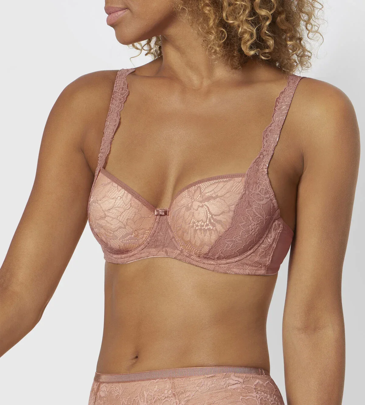 Liemenėlė Triumph su plonu pakietinimu, su lankeliais. Dekoruota siuviniais. Petnešėlės reguliuojamos, nugaroje susegama trijomis pozicijomis. Plonas pakietinimas leidžia odai kvėpuoti.