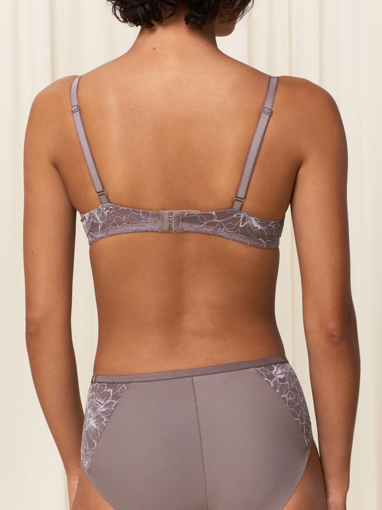 Liemenėlė Triumph su plonu pakietinimu, su lankeliais. Dekoruota siuviniais. Petnešėlės reguliuojamos, nugaroje susegama trijomis pozicijomis. Plonas pakietinimas leidžia odai kvėpuoti.