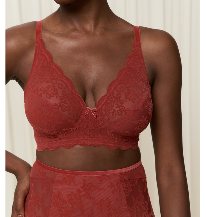 Triumph liemenėlė be pakietinimo ir be lankelių. Visa liemenėlė dekoruota velveto detalėmis. Liemenėlės petnešėlės reguliuojamos, nugaroje susegama trijose pozicijose.