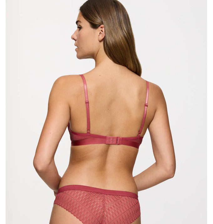 Liemenėlė Triumph pakietintais kaušeliais, su lankeliais. Liemenėlė gilia iškirpte, dekoruota tiuliu ir nėriniais. Petnešėlės reguliuojamos, nugaroje susegama trijose pozicijose.