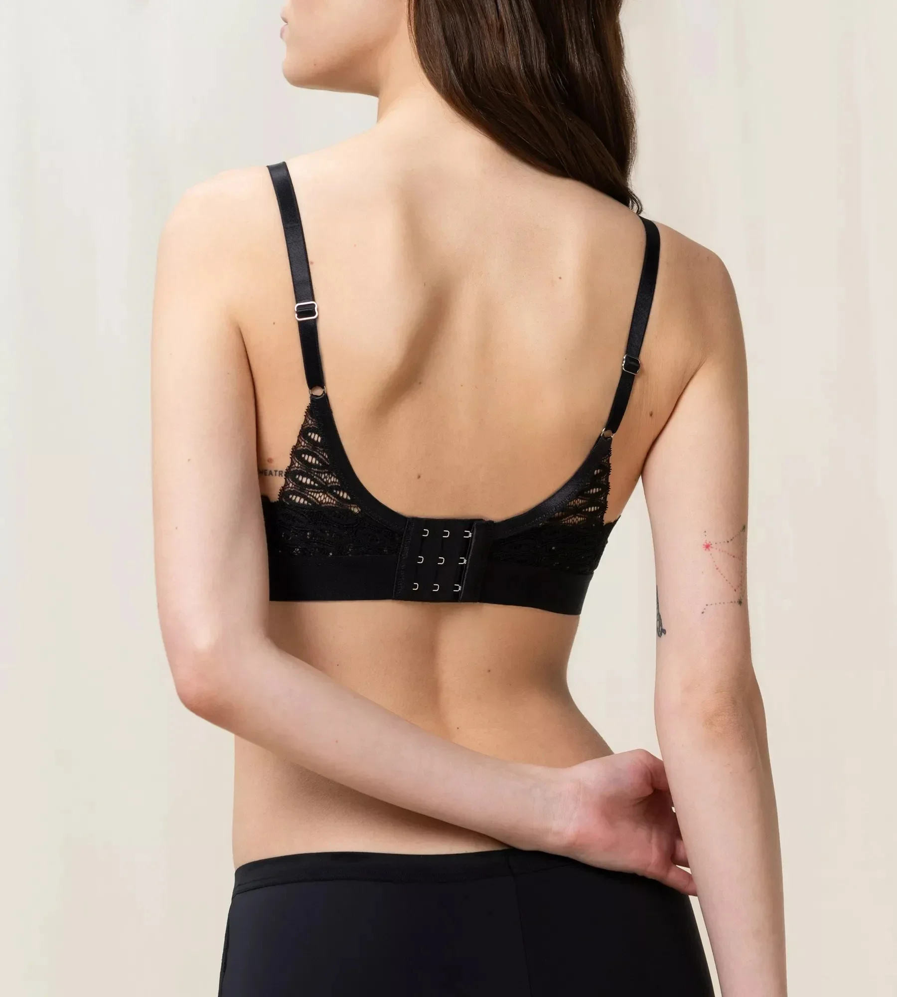 Liemenėlė be lankelių Triumph. Liemenėlė pilnai dengia krūtinę. Dekoruota nėriniais. Petnešėlės reguliuojamos. Nugaroje susegama trijose pozicijose, trimis eilėmis kabliukų.
