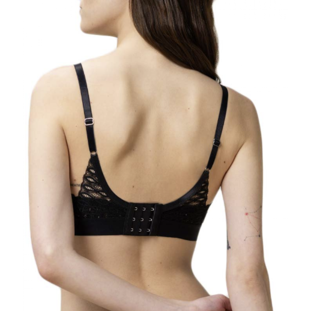 Liemenėlė be lankelių Triumph. Liemenėlė pilnai dengia krūtinę. Dekoruota nėriniais. Petnešėlės reguliuojamos. Nugaroje susegama trijose pozicijose, trimis eilėmis kabliukų.