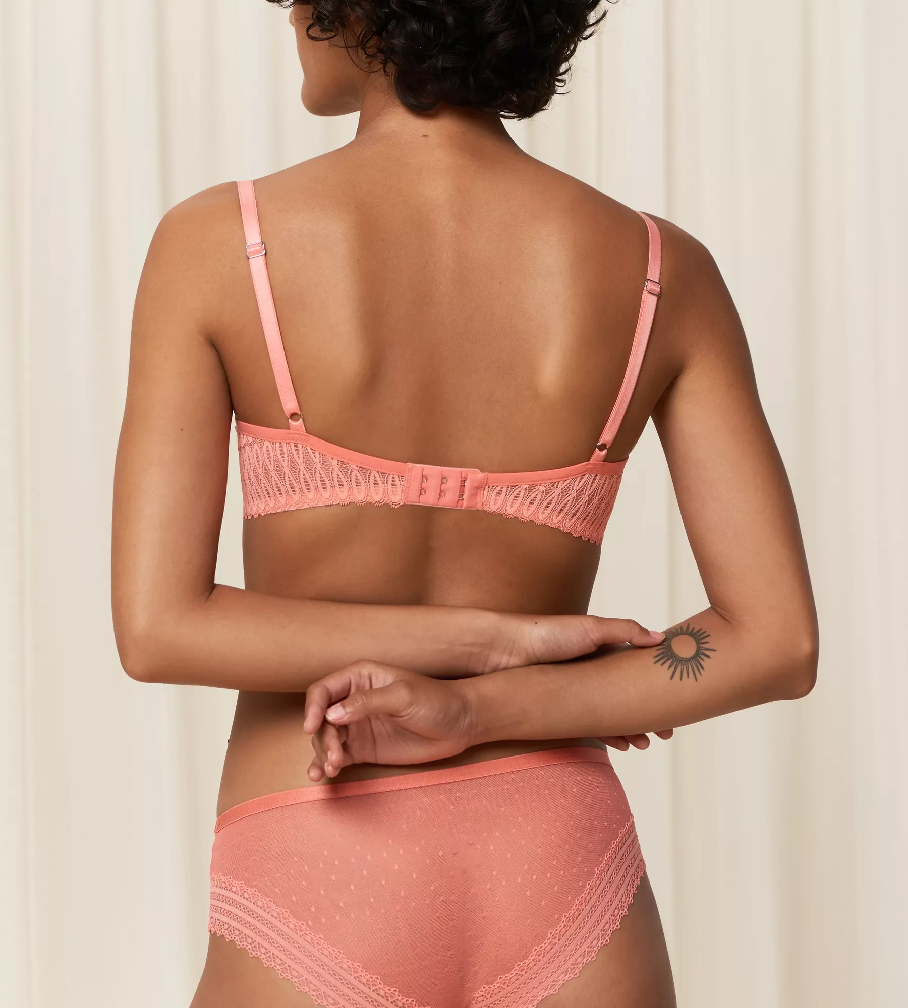 Liemenėlė su pakietinimu ir lankeliais. Liemenėlė nespaudžia jūsų kūno, nepalieka įspaudų. Reguliuojamos petnešėlės, trijų padėčių sagtelė.