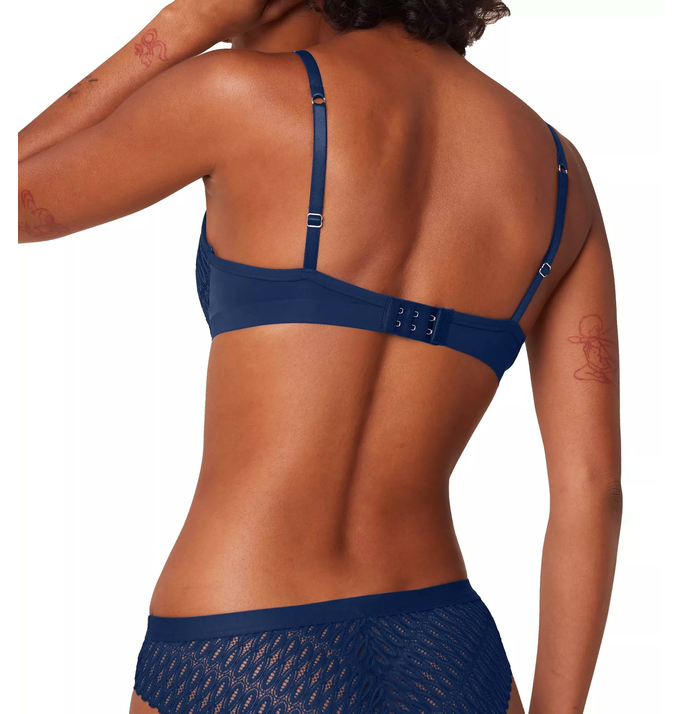 Liemenėlė Triumph pakietintais kaušeliais su lengvu pushup , su lankeliais. Liemenėlė gilia iškirpte, dekoruota tiuliu ir nėriniais. Petnešėlės reguliuojamos, nugaroje susegama trijose pozicijose.Su pushup.