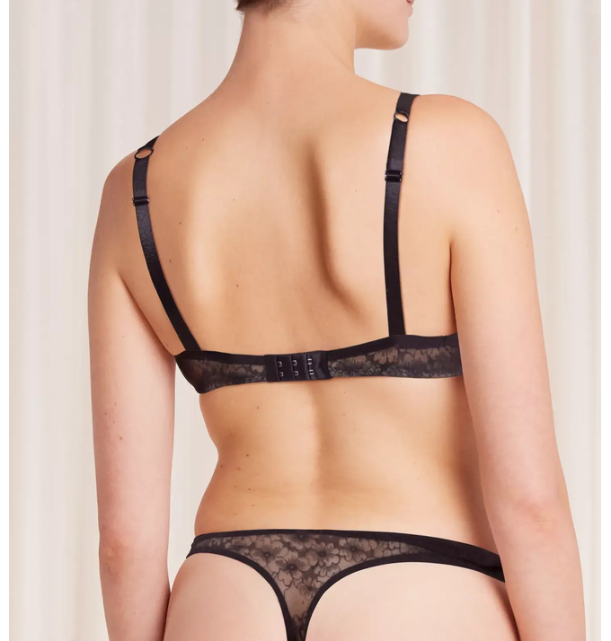 Triumph liemenėlė su lankeliais, be pakietinimo. Liemenėlė dekoruota siuviniais. Petnešėlės reguliuojamos, nugaroje susegama trijose pozicijose. Audinys perregimas.