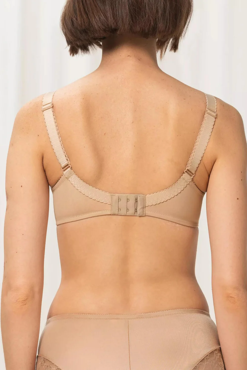 Triumph liemenėlė be pakietinimo ir be lankelių, puošta siuviniais, tvirta medžiaga puikiai laiko didesnio dydžio krūtinę, plačios petnešėlės, reguliuojamos per visą ilgį, nugaroje susegama trijomis pozicijomis, trimis kabliukų eilutėm.