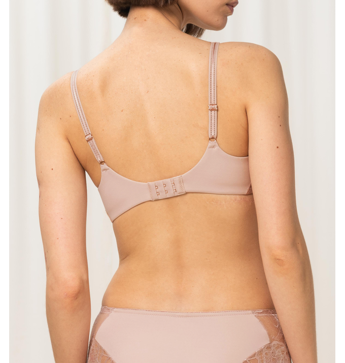Triumph liemenėlė su medvilnės pakietinimais ties kaušeliais , su lankeliais. Liemenėlė puošta estetiškais siuviniais, petnešėlės reguliuojamos, nugaroje susegama trijose pozicijose, dviem kabliukais.