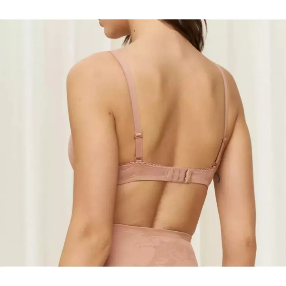 Prabangi liemenėlė Triumph. Liemenėlė su pakietintais kaušeliais ir lankeliais. Elegantiški gėlių suviniai puošia liemenėlės kaušelius bei šonus. Reguliuojamos petnešėlės taip pat dekoruotos siuviniais. Nugaroje reguliuojamos trijomis pozicijomis, trimis kabliukais,