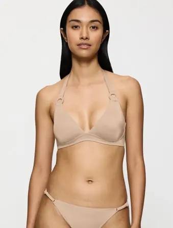 Triumph dviejų dalių maudymosi kostiumėlis. Liemenėlės kaušeliai pakietinti, pakietinimas išsiima, be lankelių. Liemenėlė rišama per kaklą. Kelnaitės atviros, šonai reguliuojami.
