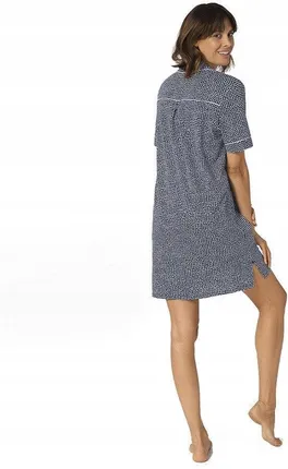 Triumph medvilnės ir modalo mišinio trikotažo naktiniai trumpom rankovėm. Naktiniai Boyfriend stiliaus, per visą ilgį sagutės. Puošta mažais piešiniais.