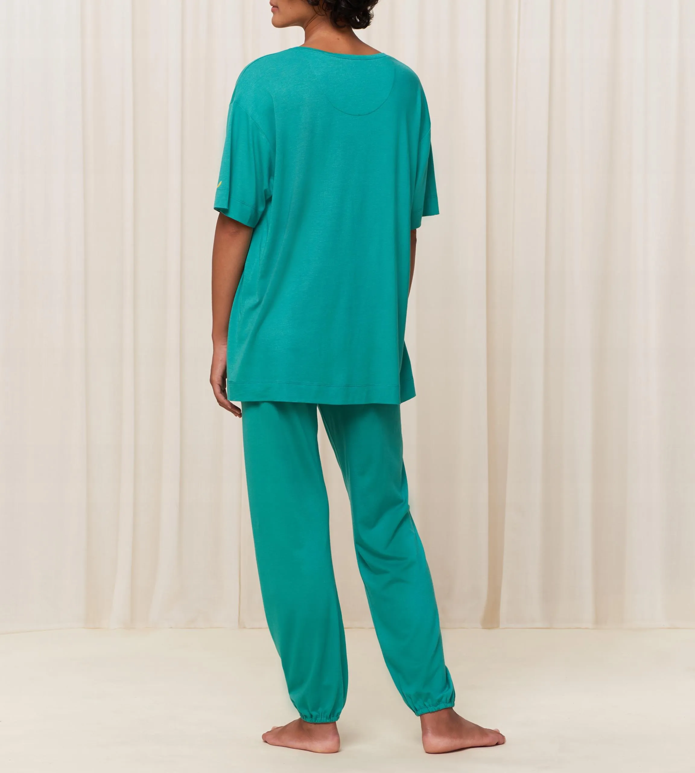 Triumph pižama. Kelnės su guma ir dirželiu ir palaidinė trumpomis rankovėmis . Sudėtis 50% medvilnė, 50% modalas. .